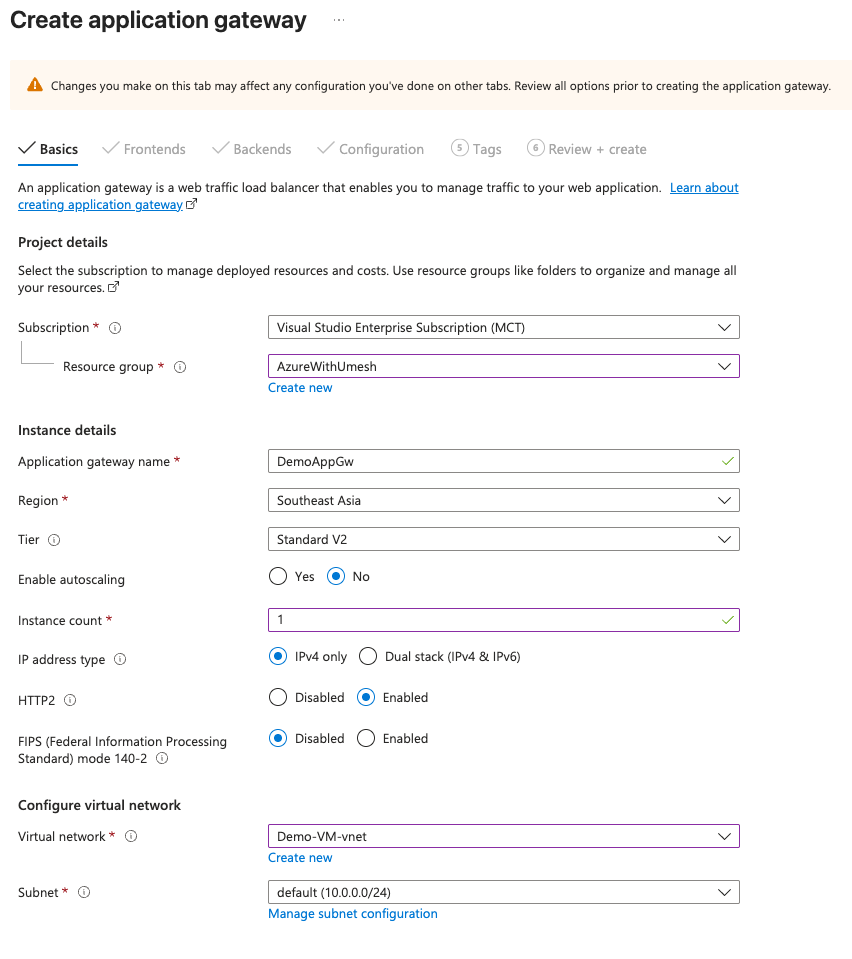 Create an Application Gateway (v2/WAF v2 SKU)